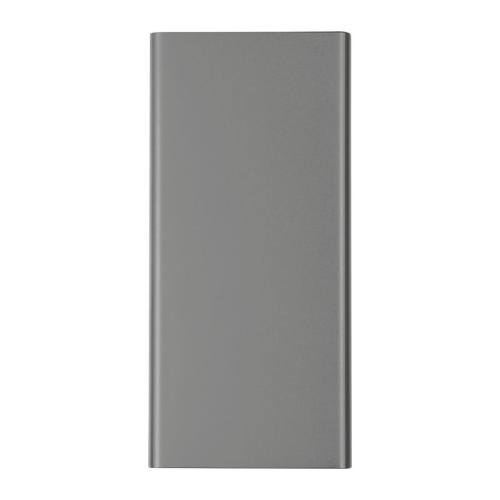Power bank made from recycled aluminium with a capacity of 10,000 mAh, LCD display and charging cable. This power bank has 2 USB ports and a Type C input.