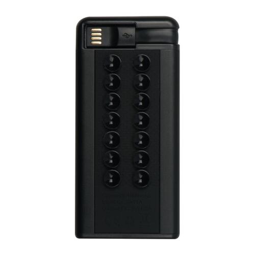 Power bank with suction cups, 2in1 charging cable (Android + iOS) and 4.000 mAh power capacity, fix it directly to your smartphone.