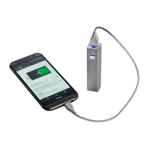 Metal power bank incl. C-Type charging cable, so you can charge your smartphone on the go. Power 2,200 mAh.