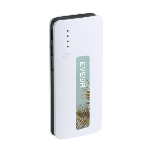 Plastic USB power bank with 3 charger ports and 10000 mAh battery. Without charger cable.