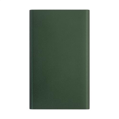 USB power bank in recycled aluminium housing with 4000 mAh battery. With 1 USB and 1 USB-C charger ports. USB-C input port. Including USB charger cable.