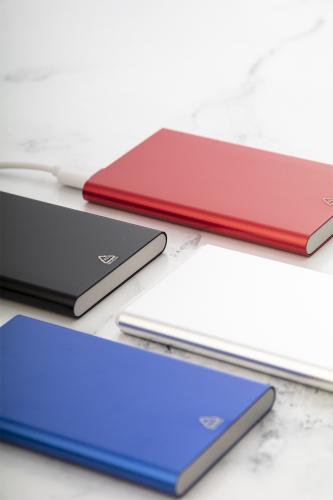 USB power bank in recycled aluminium housing with 4000 mAh battery. With 1 USB and 1 USB-C charger ports. USB-C input port. Including USB charger cable.
