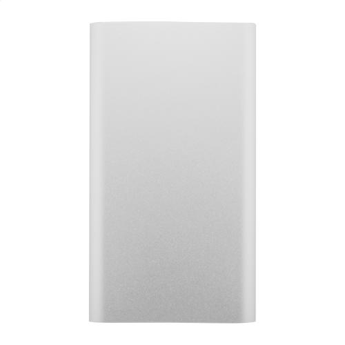 Recycled aluminium USB power bank with built-in wireless fast charger (15W) and 4000 mAh battery. With 1 USB and 1 USB-C charger ports. USB-C input port. Including USB charger cable.