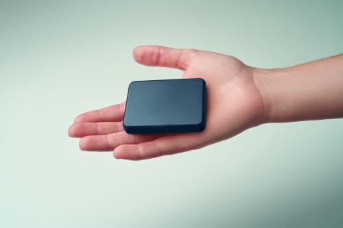 Powerbank PD 20W. 5000 mAh. Recycled ABS (GRS). Outputs: USB-C up to 20W. Input: USB-C 18W. 4 LED indicators. USB-C to USB-C cable (2A) with USB-A adapter included