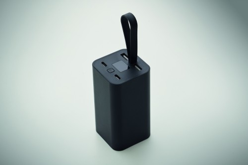 Powerbank PD 65W. 20000 mAh. Recycled aluminium (GRS). Outputs: 2 USB-C input/output up to 65W and 2 USB-A outputs. USB-C to USB-C cable (60W) included.