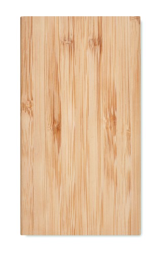 Solar powerbank. 4000 mAh. Bamboo. Outputs: USB-A up to 5W. Input: USB-A 5W. Solar input 150–200mAh/h. LED light (3 lm). Built-in Micro USB plug. USB-A to Micro USB cable with USB-C adapter included.