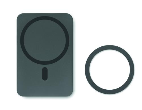 Magnetic wireless powerbank. 5000 mAh. ABS and stainless steel. PD up to 20W. Outputs: USB-C up to20W. Wireless charging up to 15W. Input: USB-C. Built-in USB-C cable. USB-C to USB-C cable with USB-A adapter and magnetic ring included.