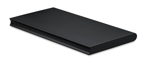 Solar powerbank. 8000 mAh. Recycled aluminium and ABS. Outputs: USB-A up to 10W. Input: USB-A 10W. Solar input 150–200mAh/h. 2 USB-A outputs. Built-in Micro USB plug. USB-A to Micro USB cable (30 cm) included.