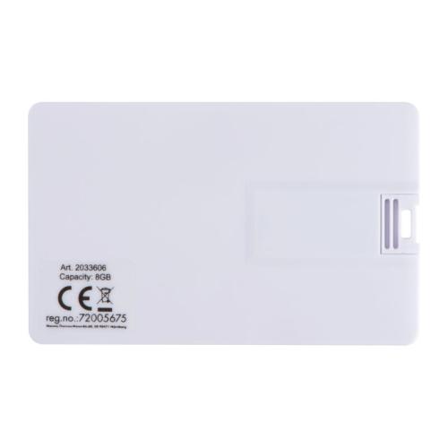 USB card with 4 GB storage capacity. Thanks to its flat shape it can be easily stowed anywhere. The large white area is perfect for digital printing. Deliveries within Germany are subject to GEMA fees.