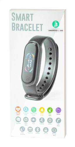 Multilingual, wireless smart watch with 0,96" TFT screen and TPU strap. With heart rate, blood pressure and blood oxygen monitor functions. Including USB charger cable.