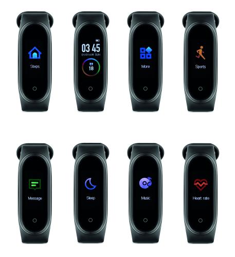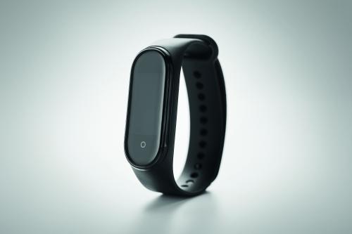 5.0 wireless smart health watch in ABS with silicone strap. 0.96 inch touch LCD display. Rechargeable Li-Pol 90 mAh battery. Requires a free app (HryFine available in both iOS and Android).