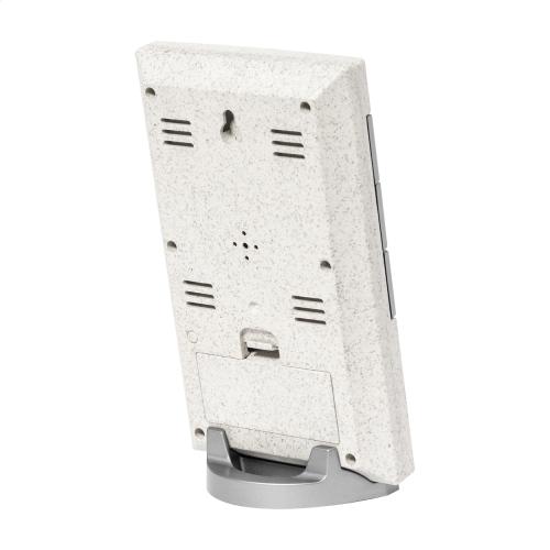 Ecological wheat straw plastic digital clock and weather station with thermometer and humidity display. Operates with 2 AAA batteries, without batteries.
