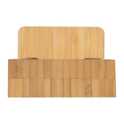 Bamboo charging station for four smartphones or tablets with one wireless charging slot, two USB ports and one USB-C port. Charging cable included.