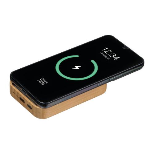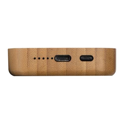 Magsafe® made of bamboo and transparent front with 5,000 mAH power for wireless charging up to 10 watts. Thanks to the integrated magnet, the charger docks onto the Iphone® and ensures fast and wireless charging. Compatible with Iphone® 12 and above, it can be used as a wireless charger for other QI-capable models.