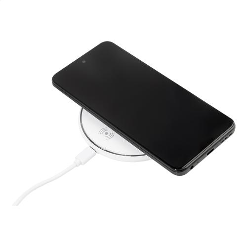 Wireless fast charger (15W) in plastic housing. Including USB charger cable.