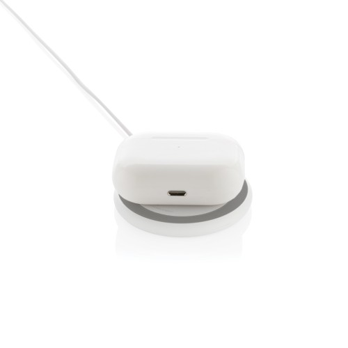Unique design 15W magnetic wireless charger that gives you the option to charge either your mobile device, earbuds or iWatch. Simply click them on and start charging. Made with recycled ABS and recycled TPE. Total recycled content: 35% based on total item weight. RCS certification ensures a completely certified supply chain of the recycled materials. Including 120 cm USB A to USB C charging cable made from RCS certified recycled TPE. Packed in FSC® packaging. PVC Free. Output 9V.2.2A Output watch: 9V/0.4A, Output earbuds: 9V/0.5A. Input 9V/3A.