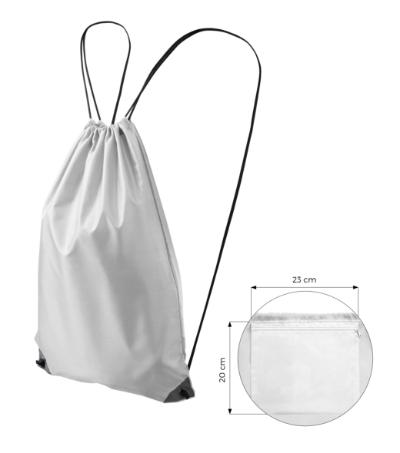 closure by drawstring, 2 polyester drawstrings in 01 colour, reflective elements in lower corners, interior zip pocket 20 x 23 cm, gymsack dimension 45 x 34 cm