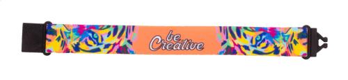 Custom made, RPET polyester bracelet with plastic buckle. With sublimation printed graphics on one side. MOQ: 100 pcs.