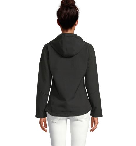 SOL'S REPLAY WOMEN, women's hooded softshell, 94% polyester - 6% elastane, fleece lining: 100% polyester, 3 layers, 8000 mm waterproof and breathable membrane softshell 340, 2 zipped side pockets and 1 zipped chest pocket, adjustable waist drawstring, adjustable cuffs with self-gripping fastener, hood with drawstring. About sizes matching, please refer to the size chart in the product documentation section.