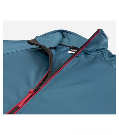 smooth stretch quick-drying fabric, straight cut with side seams, full-length reverse coil zipper with chin protection, inner neckline with a tape, raglan sleeves, cuffs with hole for thumb, zip pockets, trimmed by elastic stripe, contrast elements, hanging loop