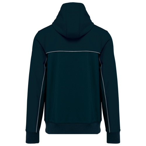 • Contrasting piping between the two-tone parts of the garment (body and sleeves, front and back)
