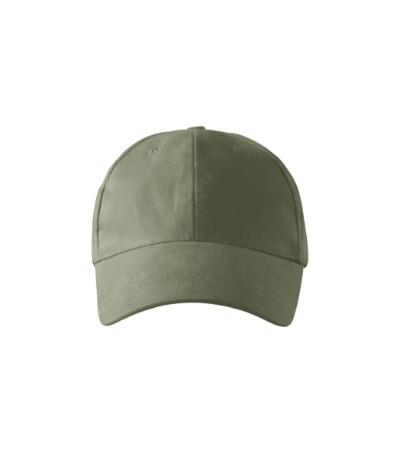 six-panel design, bonded 2 front panels, stitched, slightly curved peak, embroidered air holes, sweatband, size adjustable by brass clip