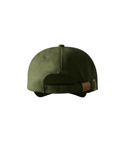six-panel design, bonded 2 front panels, stitched, slightly curved peak, embroidered air holes, sweatband, size adjustable by brass clip