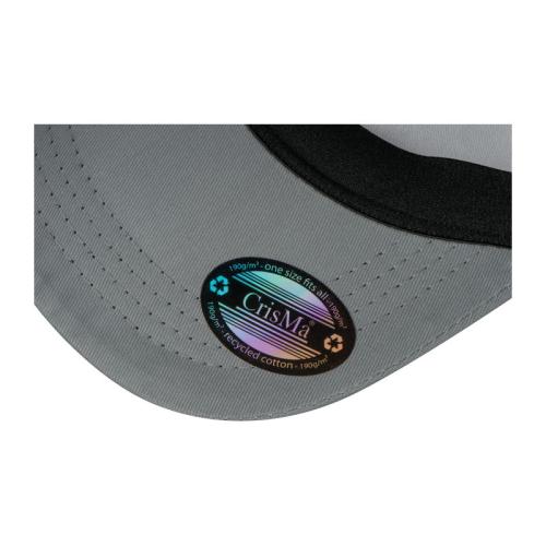 6 panel sandwich CrisMa baseball cap made from recycled 190g/m² cotton and suitable for almost all sizes thanks to the elasticated fastening.
