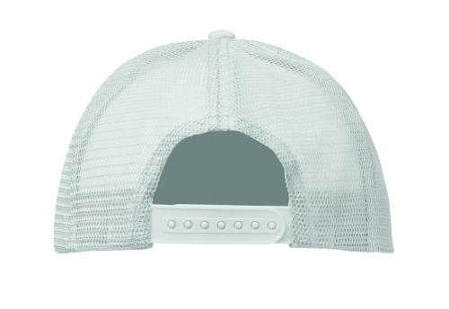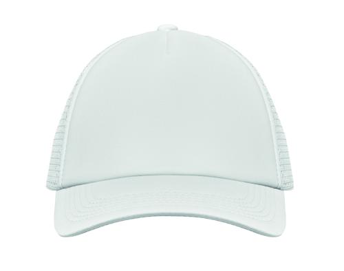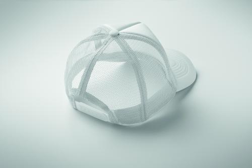 5 panel truckers cap in polyester 140-150 gr/m² with adjustment plastic snap closure. White front panel and colour visor in polyester jersey with foam backing. Other panels in colour mesh. Size 7 1/4.