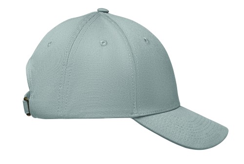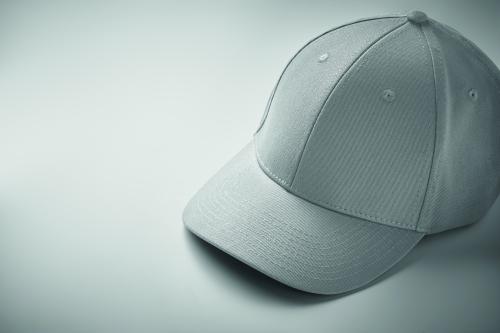 6 panel baseball cap in cotton twill 280 gr/m² with adjustable steel belt closure. Oxford peak. Washable. Size 7 1/4.