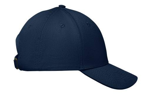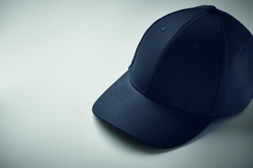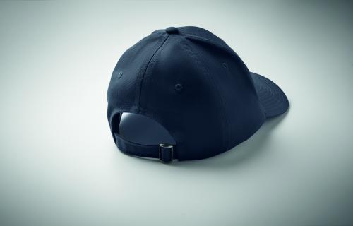 6 panel baseball cap in cotton twill 280 gr/m² with adjustable steel belt closure. Oxford peak. Washable. Size 7 1/4.