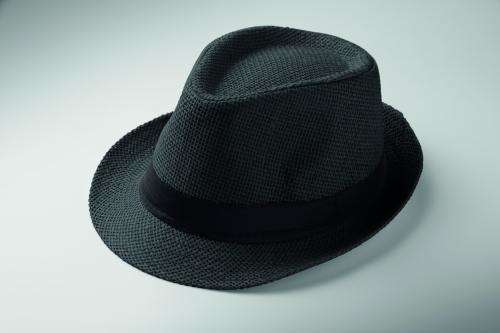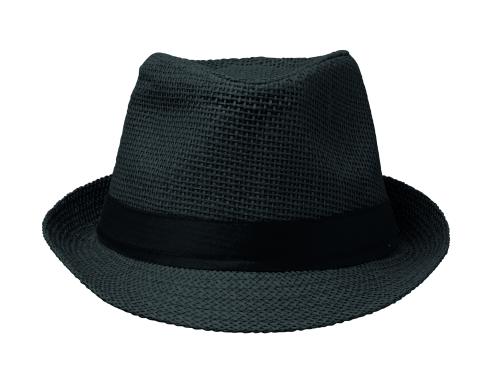 Paper straw hat with black polyester band. For unprinted orders the band will be supplied unattached to the items.