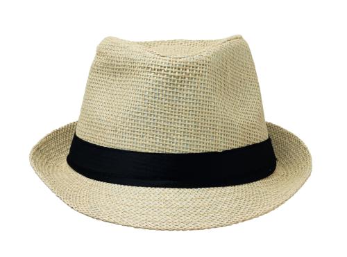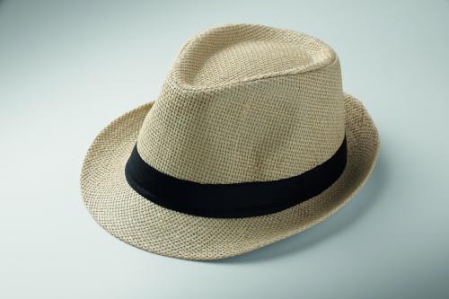 Paper straw hat with black polyester band. For unprinted orders the band will be supplied unattached to the items.