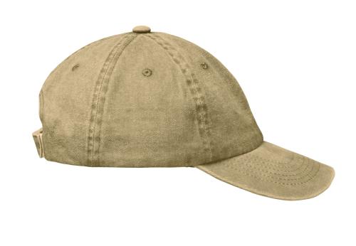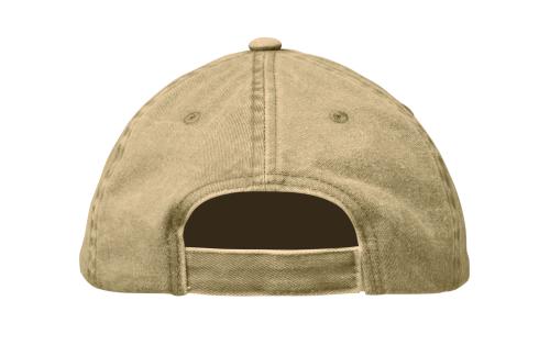 Vintage 6 panel baseball cap in washed cotton. 265 gr/m² with adjustable hook and loop closure. 6 stitched eyelets in matching colour. Size 7 1/4.