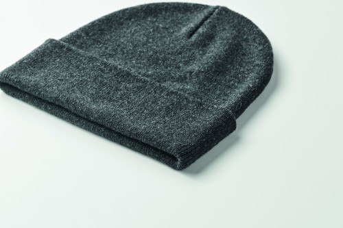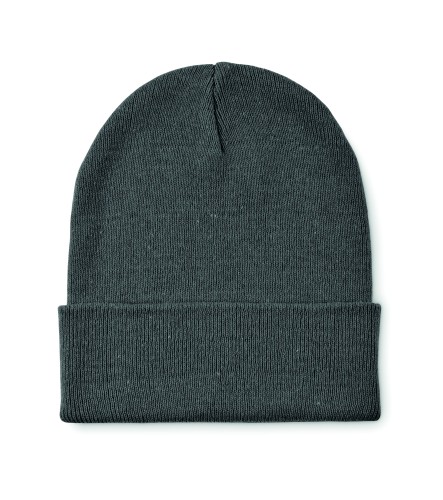 Unisex knitted beanie hat in soft stretchable polyester (64%) and acrylic (36%) with rolled up cuff. A stretchy one-size-fits-all design.