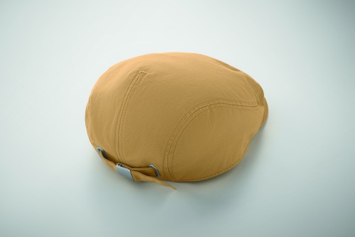 Newsboy flat cap in 235 gr/m² twill cotton with metal buckle closure.