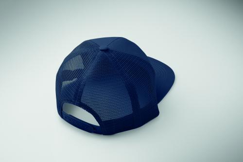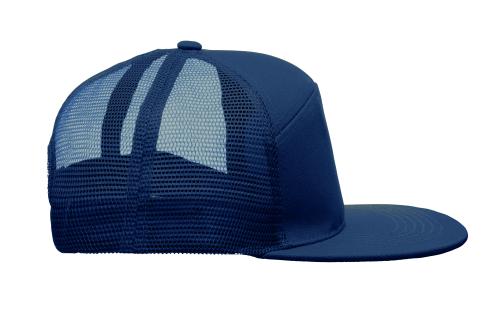 7 panel flat visor cap in cotton twill 235 gr/m² with polyester mesh backside and plastic closure.