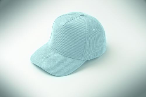 5 panel baseball cap in polyester corduroy with adjustable metal buckle closure. 220 gr/m².