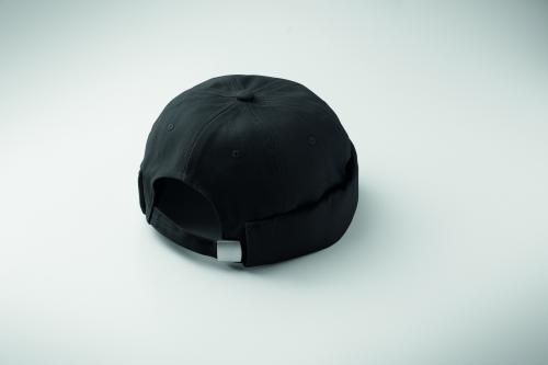 Docker cap made of 100% heavy brushed cotton, 260gr/m2, mesh and with metal buckle
