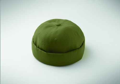 Docker cap made of 100% heavy brushed cotton, 260gr/m2, mesh and with metal buckle