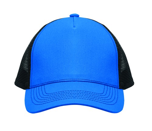5 panel trucker cap with front panel and visor in 250 gr/m² cotton, back mesh in polyester, hook and loop closure.