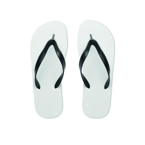Sublimation beach slippers with PVC straps. Sole made of rubber with polyester top cloth.Fits 38-41. Item can only be ordered printed.