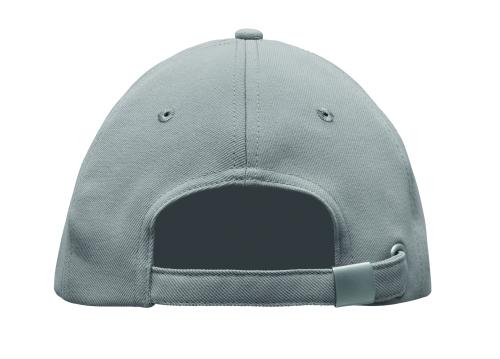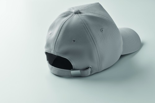 RPET 5 panel baseball cap in polyester 210 gm/m2 with silver steel buckle. 4 embroidered eyelets in matching colour. Size 7 1/4.