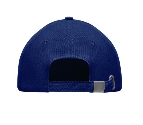 5 panel baseball cap in heavy brushed twill cotton 260 gm/m2 with silver steel buckle. 4 embroidered eyelets in matching colour. Size 7 1/4.