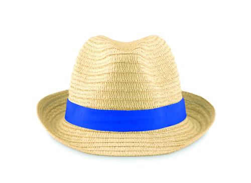 Paper straw hat with coloured polyester band. For unprinted orders the band will be supplied unattached to the items.