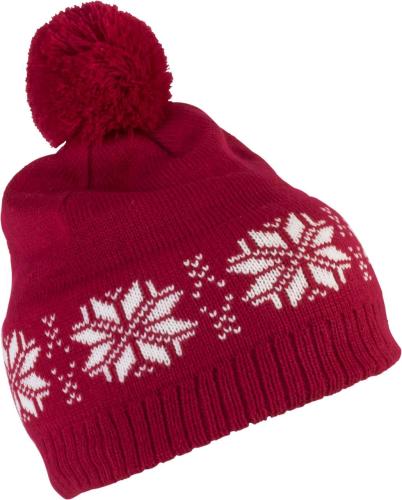 - 100% acrylic Fair Isle knit bobble beanie
