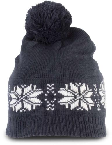 - 100% acrylic Fair Isle knit bobble beanie