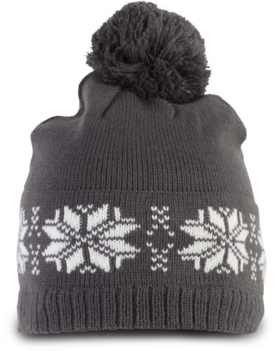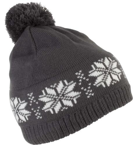 - 100% acrylic Fair Isle knit bobble beanie