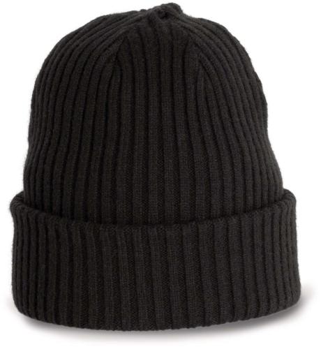 - Knitted beanie cut typical of deep-sea fisherman beanies