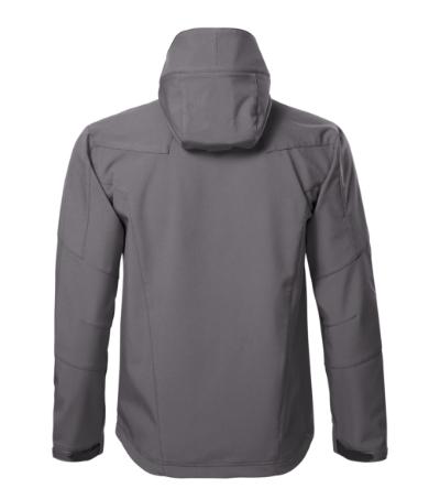 3-layer softshell with membrane, impressive softshell texture, Nanotex® finish preventing water penetration, full-length coil zipper with flap, drawstring hood, hood and sleeve hems adjustable by velcro, pockets with reverse coil zipper, breast pocket, curved and slightly prolonged back part, contrast elements, Care information for softshell fabric